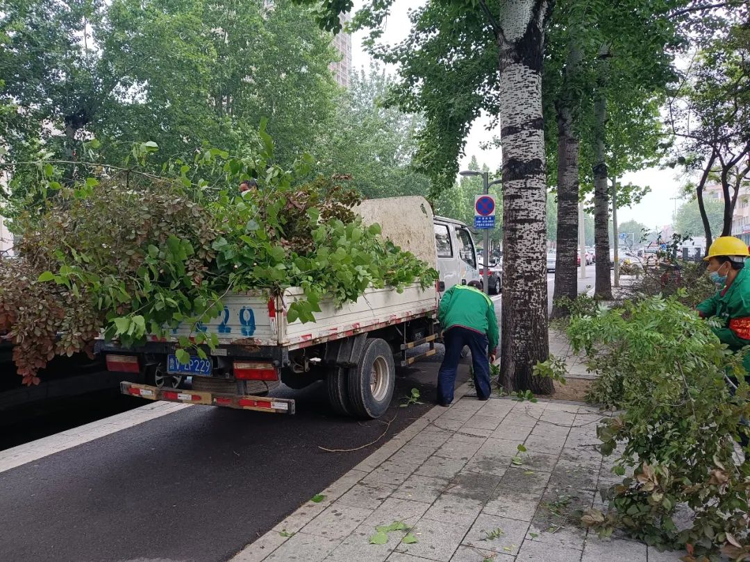 在修剪中实施错峰作业法,避开上下班高峰人流量,早上四点开始施工,利用吊车、高枝锯和高枝剪等工具对遮挡树枝进行修剪,并第一时间将剪除的树枝及时装车清运,保持现场干净整洁。目前,建新街、建桥路、东升路等路段已基本修剪完成,其他路段修剪工作正在有序开展之中。