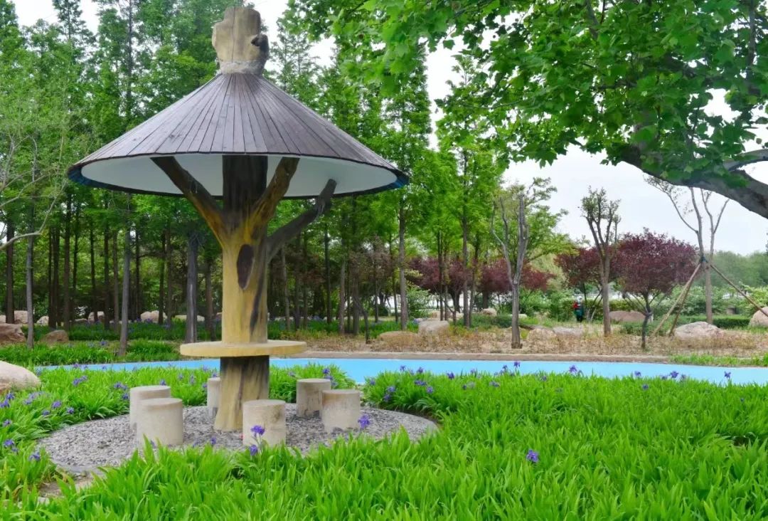 4月29日,寿光弥河生态观光园东岸的原水上乐园区域绿树如茵,色彩丰富的彩绘广场让人眼前一亮,层次分明、品种丰富的绿化苗木生长茂盛,形状各异的桥、亭点缀其中,弥水边又一个耀眼的休闲公园映入眼帘。