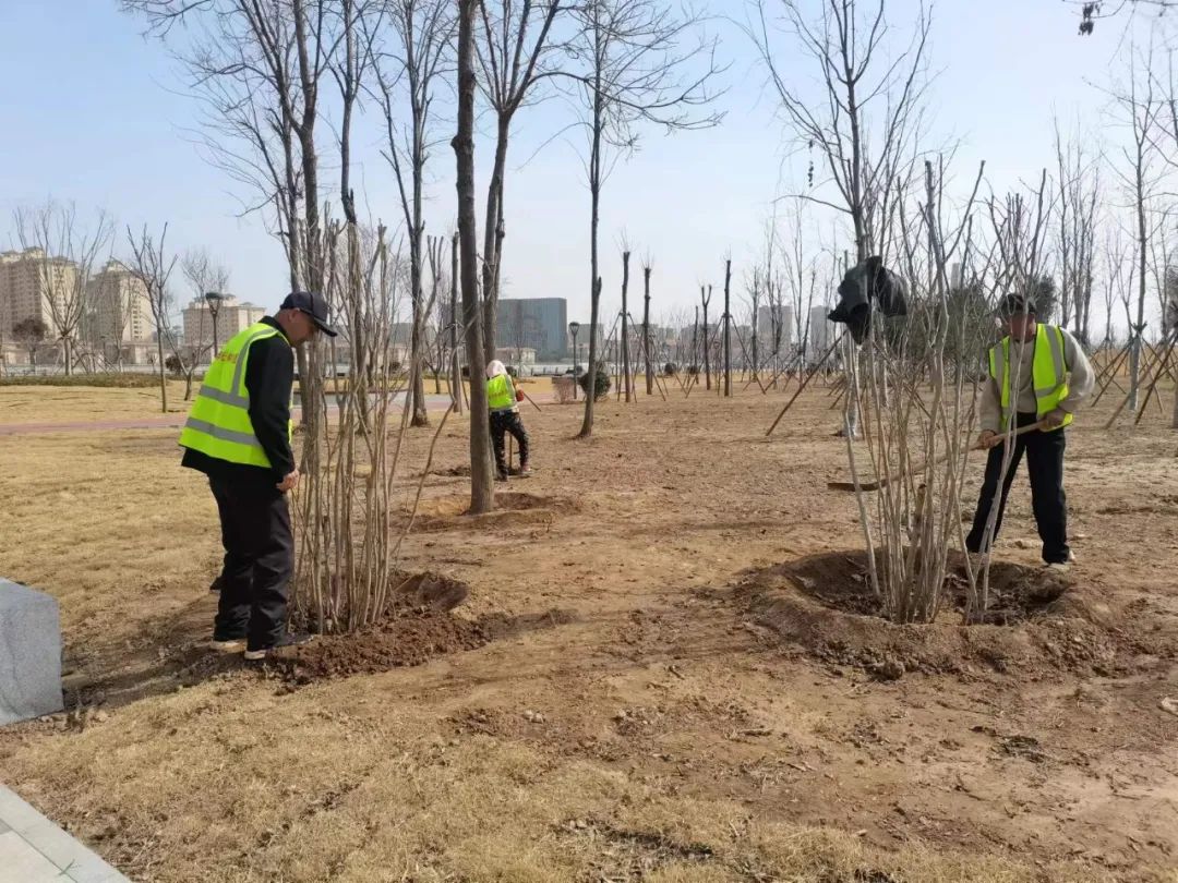 在花木栽植过程中,集团制定科学的苗木补植方案,注重植物色彩搭配,在原有常绿植物的基础上,补栽染井吉野樱、紫荆、金银木、阳光樱、绚丽海棠、西府海棠等精选优质观花苗木1000余株,进一步丰富了城市绿化的层次、色彩,从而达到“补绿、增花、添彩、提景”的效果。