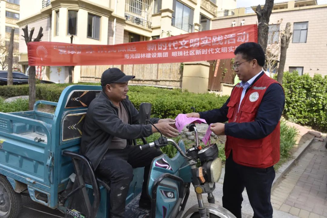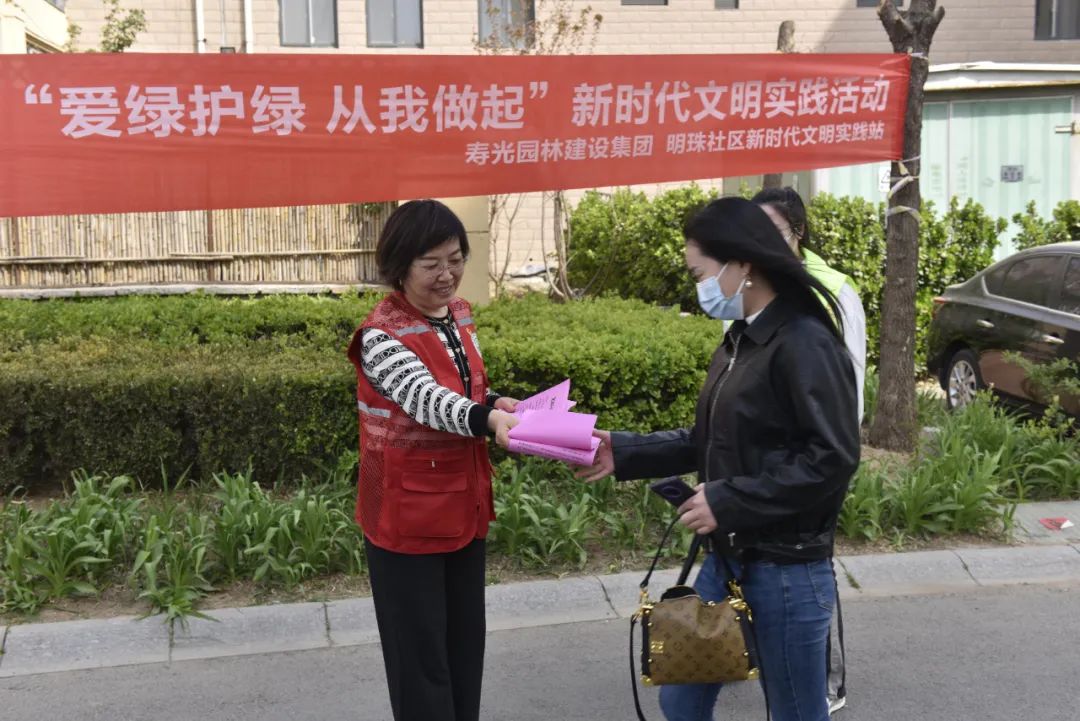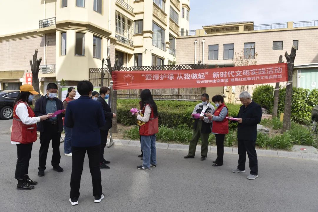 3月31日下午,寿光园林建设集团绿色使者志愿服务队走进明珠社区,开展“爱绿护绿”宣讲进社区志愿服务活动,为社区居民发放倡议书,宣讲绿化知识,提高市民生态环保意识,营造“爱绿护绿”良好氛围。