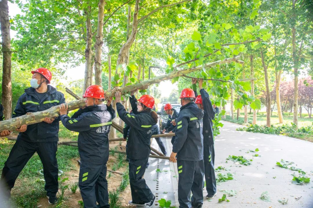 后勤组迅速分发防汛物资,各应急突击队根据指挥命令迅速出击,清理阻碍交通的倒伏树木,对超过警戒水位水池进行强排,填装沙袋封堵办公区域,对弥河沿岸园区人员进行劝离,转移物资...... 整个演练过程中,各支队伍反应迅速、措施得当、处置高效、衔接顺畅、安全有序,上午9点整,各项演练任务圆满完成。