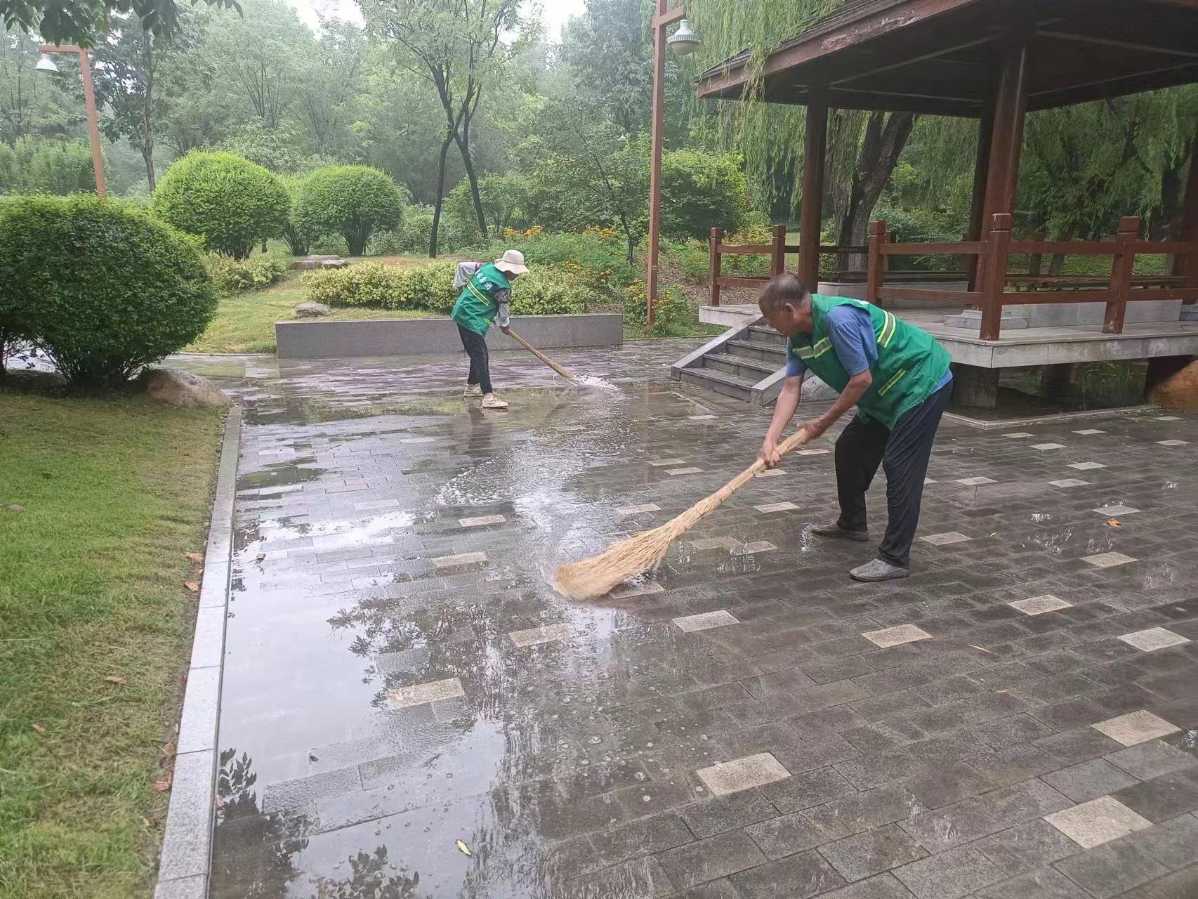 7月22日,寿光园林建设集团迅速启动防汛应急预案,园林工作人员第一时间到道路绿地、公园游园等重点区域进行巡查,对断枝歪树、积水内涝、路面湿滑等隐患进行排查,修剪、清理断枝,加固歪树,清理疏通园内道路积水、下水篦子,在易滑路面放置警示标识,全力做好积水区域的排涝工作。下一步,寿光园林建设集团将加强应急值守,密切关注天气变化和降雨情况,全力保障市民游园安全。