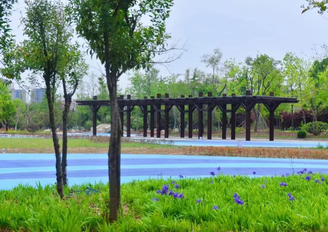 4月29日,寿光弥河生态观光园东岸的原水上乐园区域绿树如茵,色彩丰富的彩绘广场让人眼前一亮,层次分明、品种丰富的绿化苗木生长茂盛,形状各异的桥、亭点缀其中,弥水边又一个耀眼的休闲公园映入眼帘。