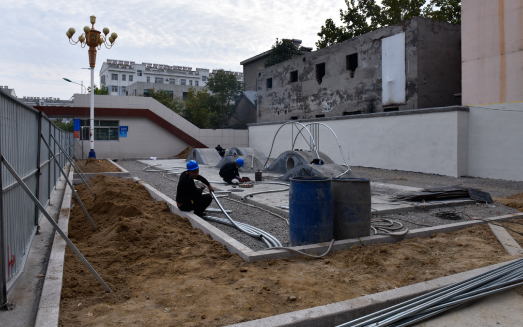 10月26日,在寿光市建新街百合嘉苑北门口两侧,寿光园林建设集团工程施工人员正在平整场地、基础开槽、挡墙砌筑。目前,寿光园林建设集团对已具备施工条件的10处口袋公园全面展开施工。