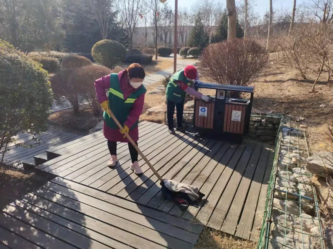 确保公园游园卫生清洁横到边、竖到沿,无死角、无盲区,垃圾随产随清,照明、护栏、座椅坐凳、健身设施每天专人不间断保洁,做好消杀防疫。同时加强管辖公厕保洁,对公厕内设施每日全面清洗,门窗及把手仔细擦拭,每日进行两次以上消毒,确保公厕内无异味,无垃圾。