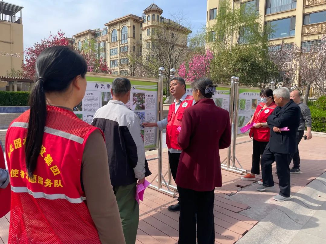 绿化知识宣传展板前,志愿者们的悉心讲解吸引了来往市民纷纷驻足观看。在认真听了志愿者对寿光常见绿化苗木种类及虫害防治等相关绿化知识科普后,不少市民提出绿化问题,志愿者们一一进行了解答,并分享了日常绿植栽培、养护技能,现场气氛十分活跃。