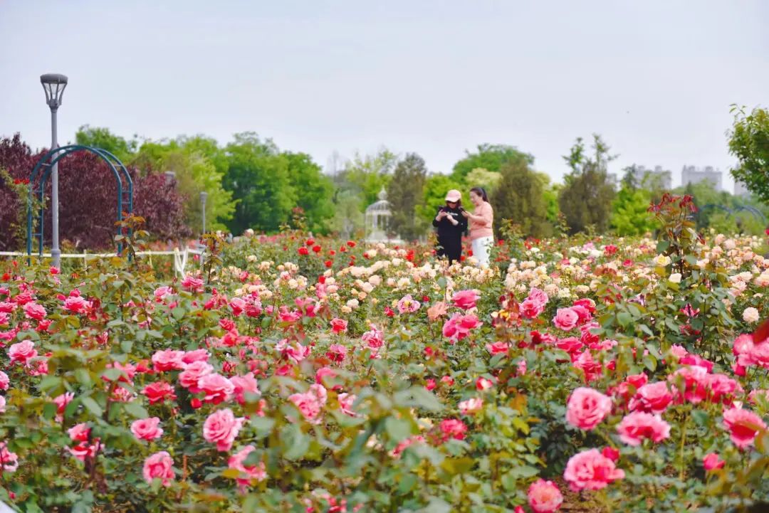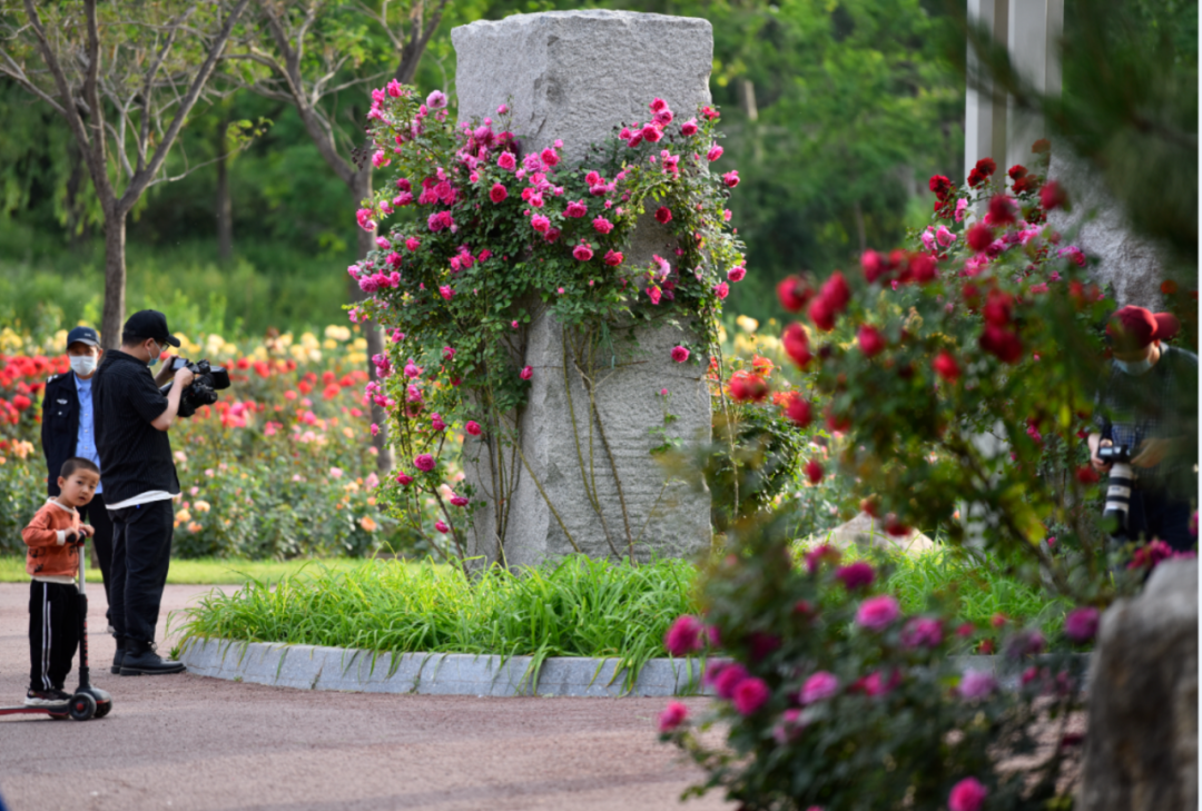 月季花开满院宣,芳香四溢沁青天。立夏已过,春天渐行渐远,夏天迈着轻盈的脚步款款而来。随着气温升高,在中华月季园内,200多个品种,20余万株的月季用它独特芬芳吸引了大批游客前来观赏。红的、粉的、黄的……一朵朵色彩各异的月季花俏立在枝头热烈绽放,千姿百态,明媚生动,引得大家连连称赞,纷纷拿出手机与月季合影留念,一起享受这别样初夏时光。