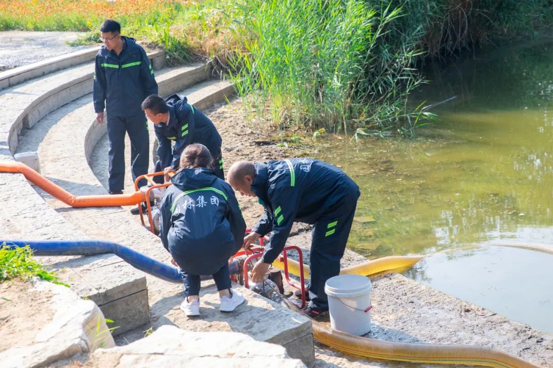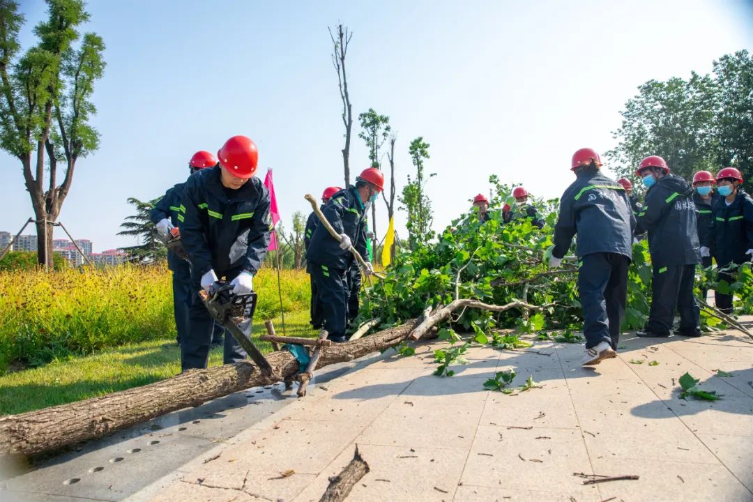 后勤组迅速分发防汛物资,各应急突击队根据指挥命令迅速出击,清理阻碍交通的倒伏树木,对超过警戒水位水池进行强排,填装沙袋封堵办公区域,对弥河沿岸园区人员进行劝离,转移物资...... 整个演练过程中,各支队伍反应迅速、措施得当、处置高效、衔接顺畅、安全有序,上午9点整,各项演练任务圆满完成。