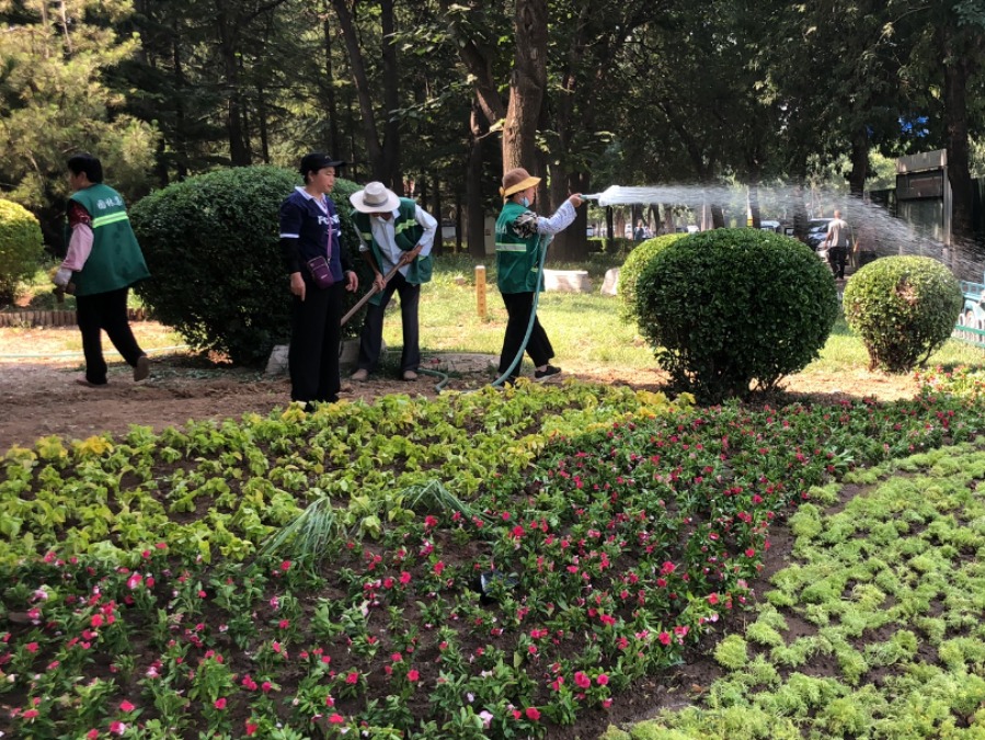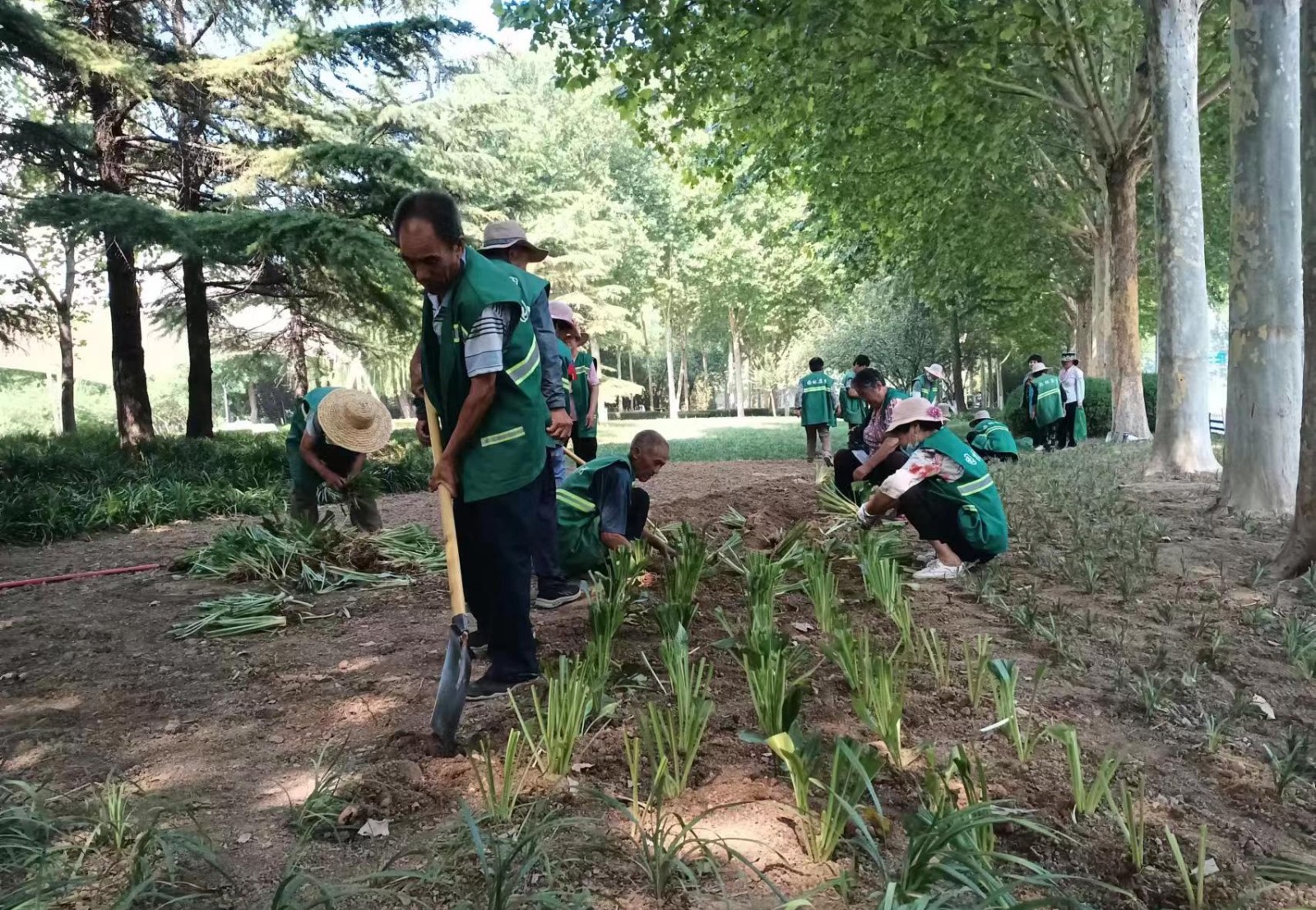 6月24日,在圣城街东段两侧绿地内,随处可见正冒着高温劳作的园林工人,他们栽植花草、疏剪苗木、修整树穴或绿地边界……整个现场井然有序,一派热火朝天的景象。在园林工人的忙碌中,道路两侧绿地景观更加精致靓丽。